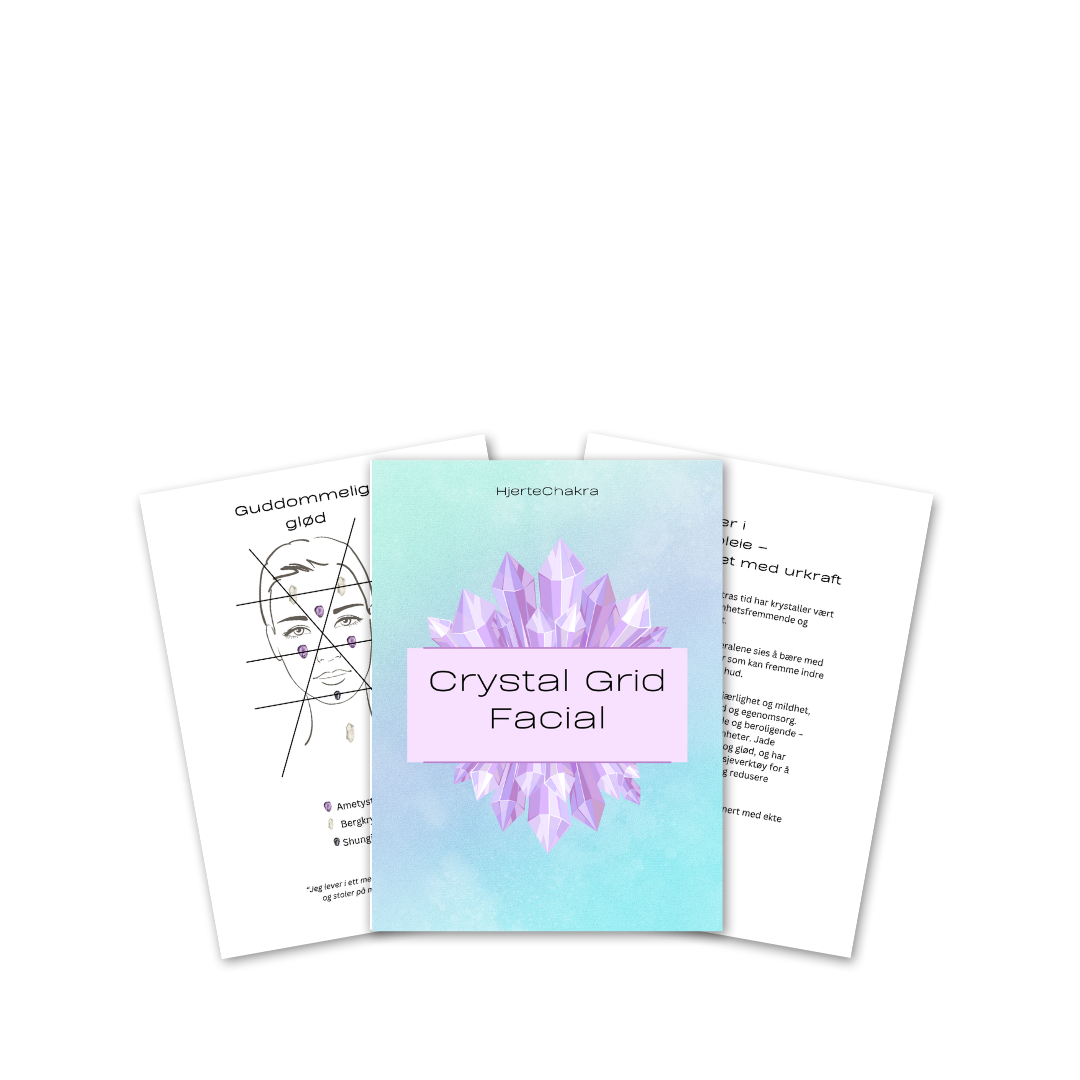 Kort forklart: Det er å plassere utvalgte krystaller i et mønster (ofte inspirert av hellig geometri) over ansiktet ditt, med intensjon. Det kan være å dempe stress, gi mental klarhet eller bare hente deg litt hjem i deg selv. Når krystallene ligger i en grid og virker sammen, forsterkes energiene deres. Det er en laginnsats med edelstener og intensjon.